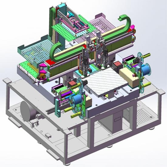 Cette machine a automatisé le laminage à la presse dans l'automatisation industrielle. Il adopte une double tête et un positionnement visuel pour ajuster automatiquement le papier adhésif par un robot de chargement et de déchargement automatique du matériau, puis utilise un moteur linéaire et une règle de grille pour obtenir une vitesse et une précision élevées. La précision d'ajustement peut atteindre +/-0,05 mm.