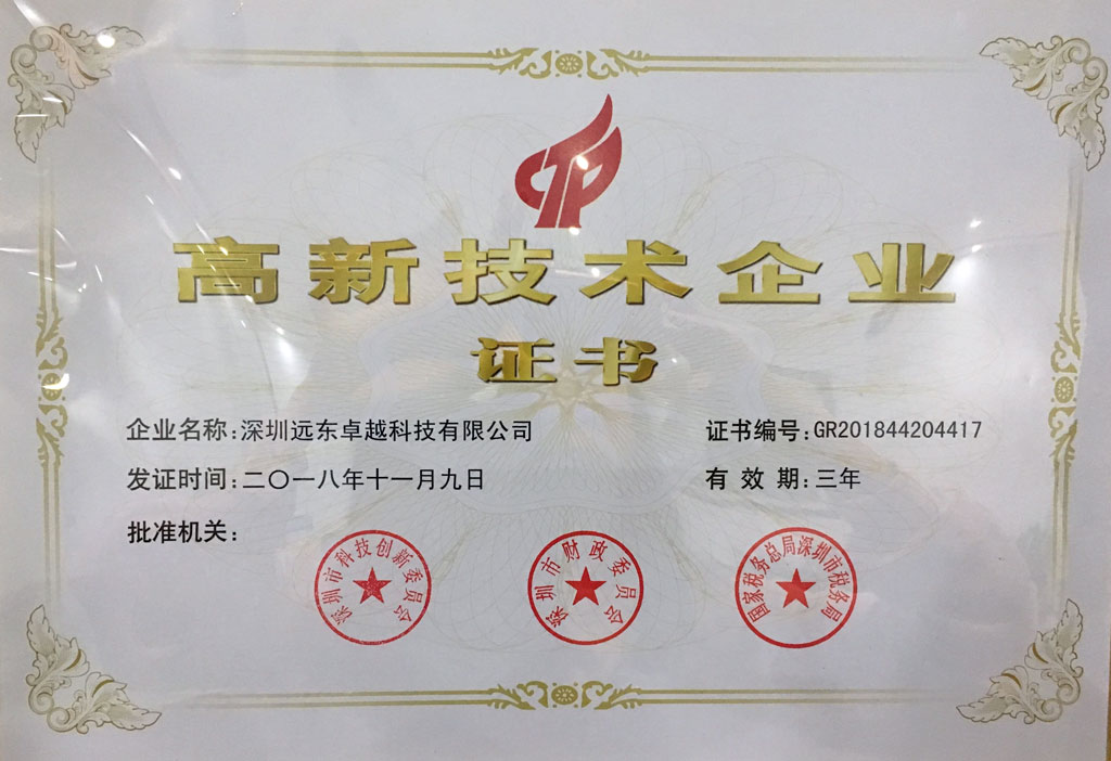 Nous obtenons également le soutien du gouvernement par le certificat national de haute technologie approuvé par le gouvernement de la ville.